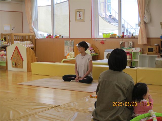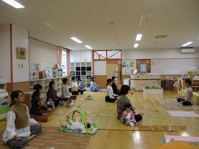 ピヨピヨの日に月に1回行われるヨガの時間、身体をほぐし整えリラックス。人気の時間です。
