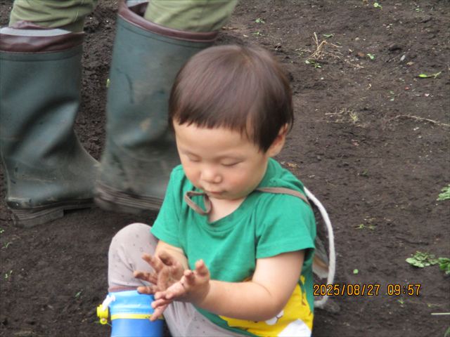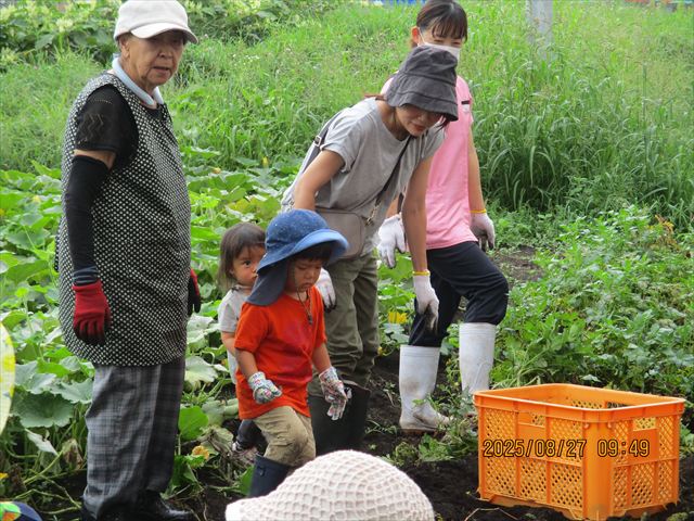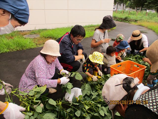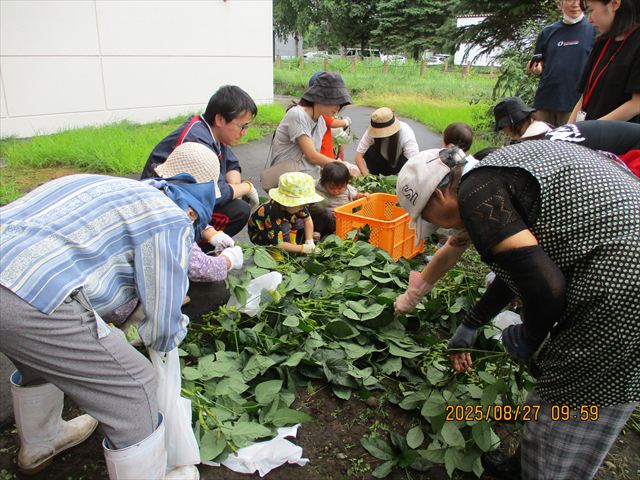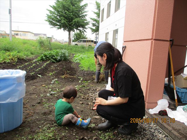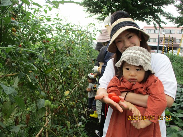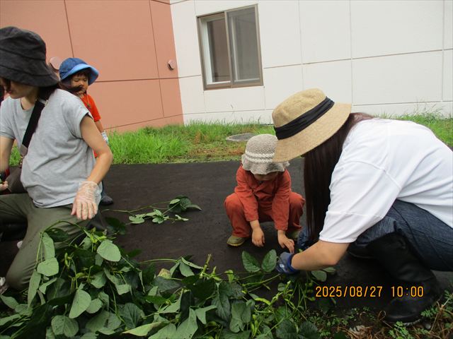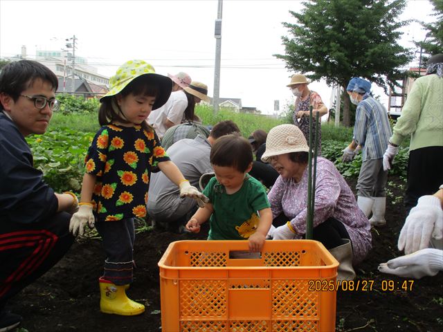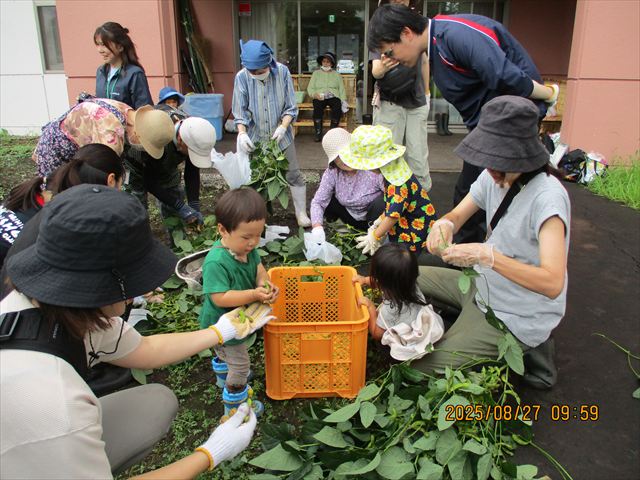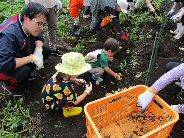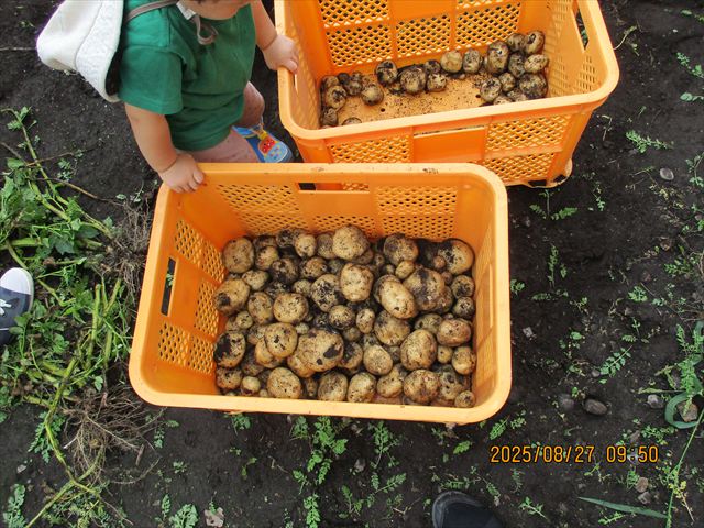 土の中から出てきたおいもを一生懸命拾っては運ぶ子供たち。トマトや枝豆も収穫し、喜んでいましたよ。