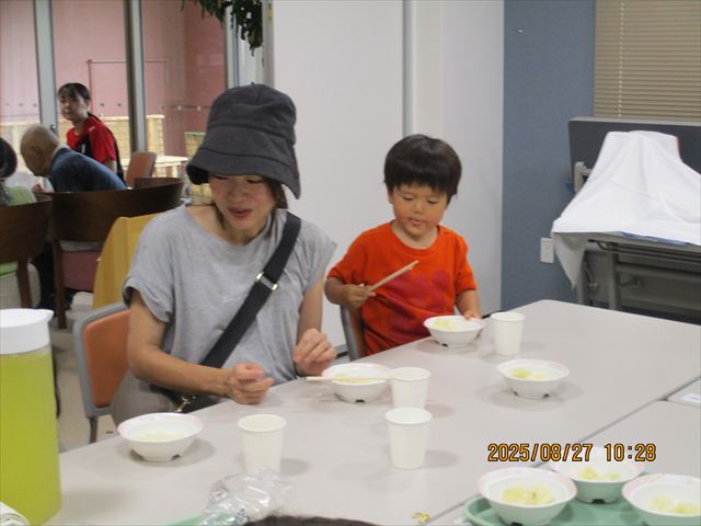 頑張った後は、採れたてのおいもをことの葉さんの調理の方が蒸かしてくださりおいしくいただきました。