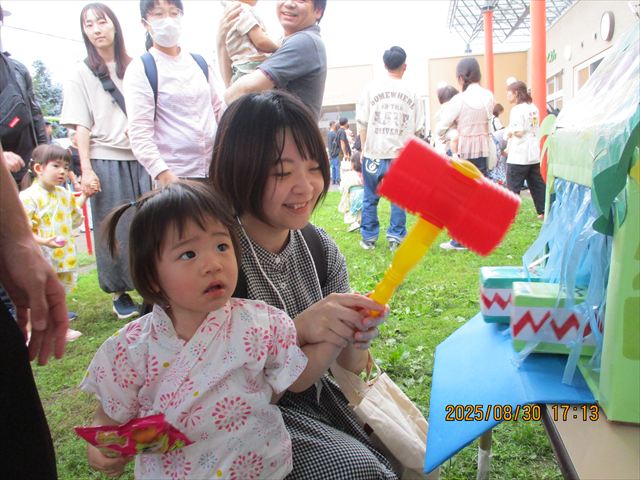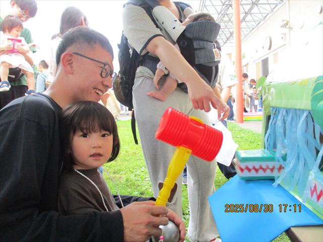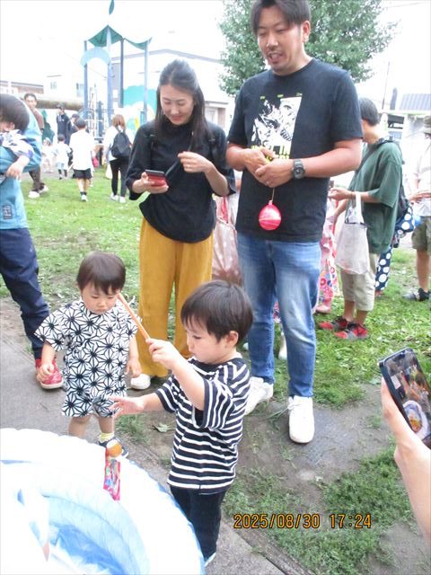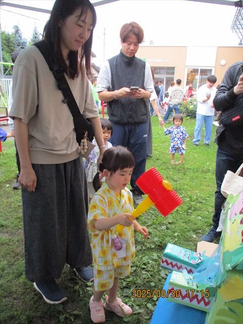 保育園の夏まつりに参加してくれた子どもたち。今日はパパたちも一緒で、おやこで楽しい時間を過ごしてくれたようです。