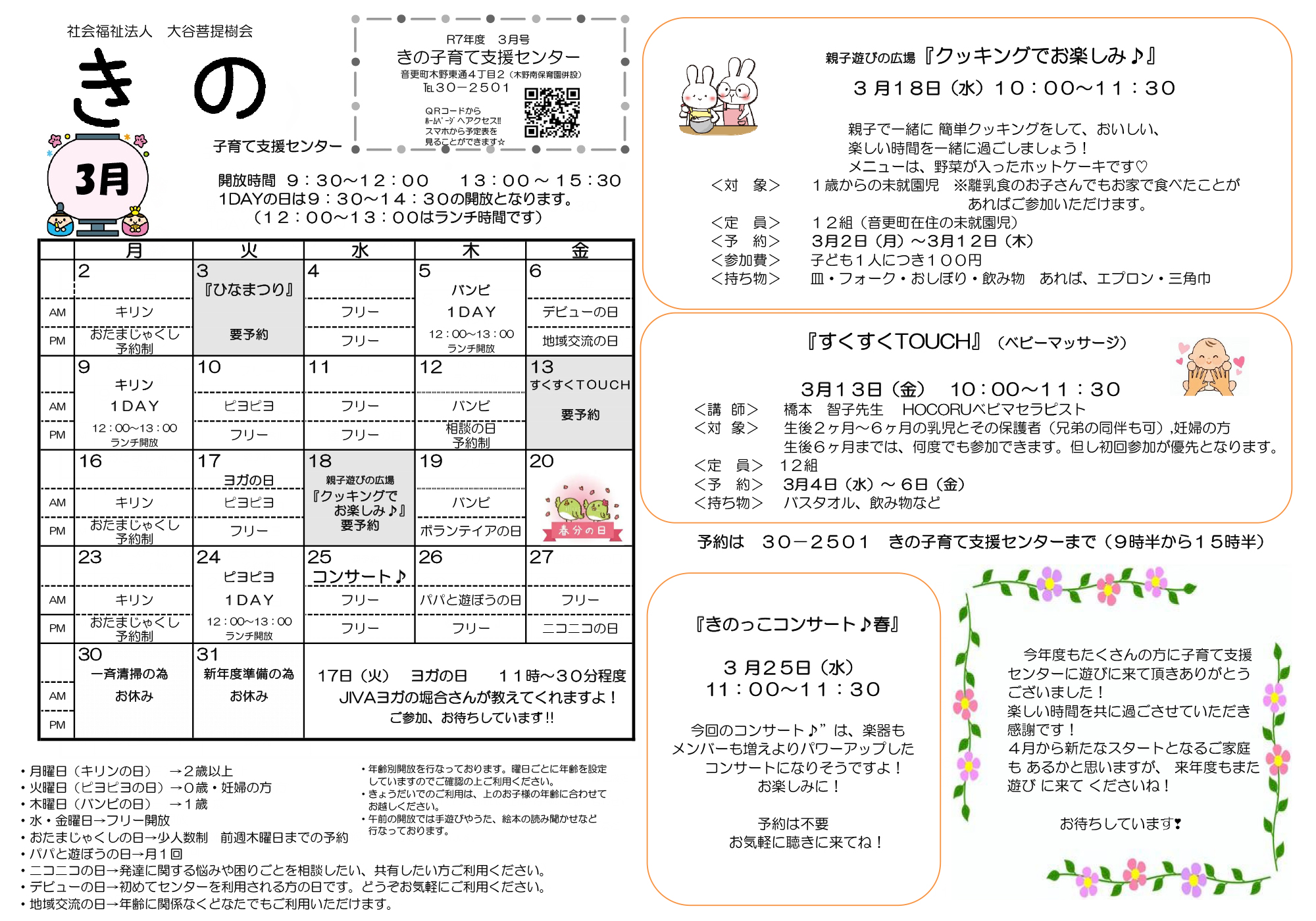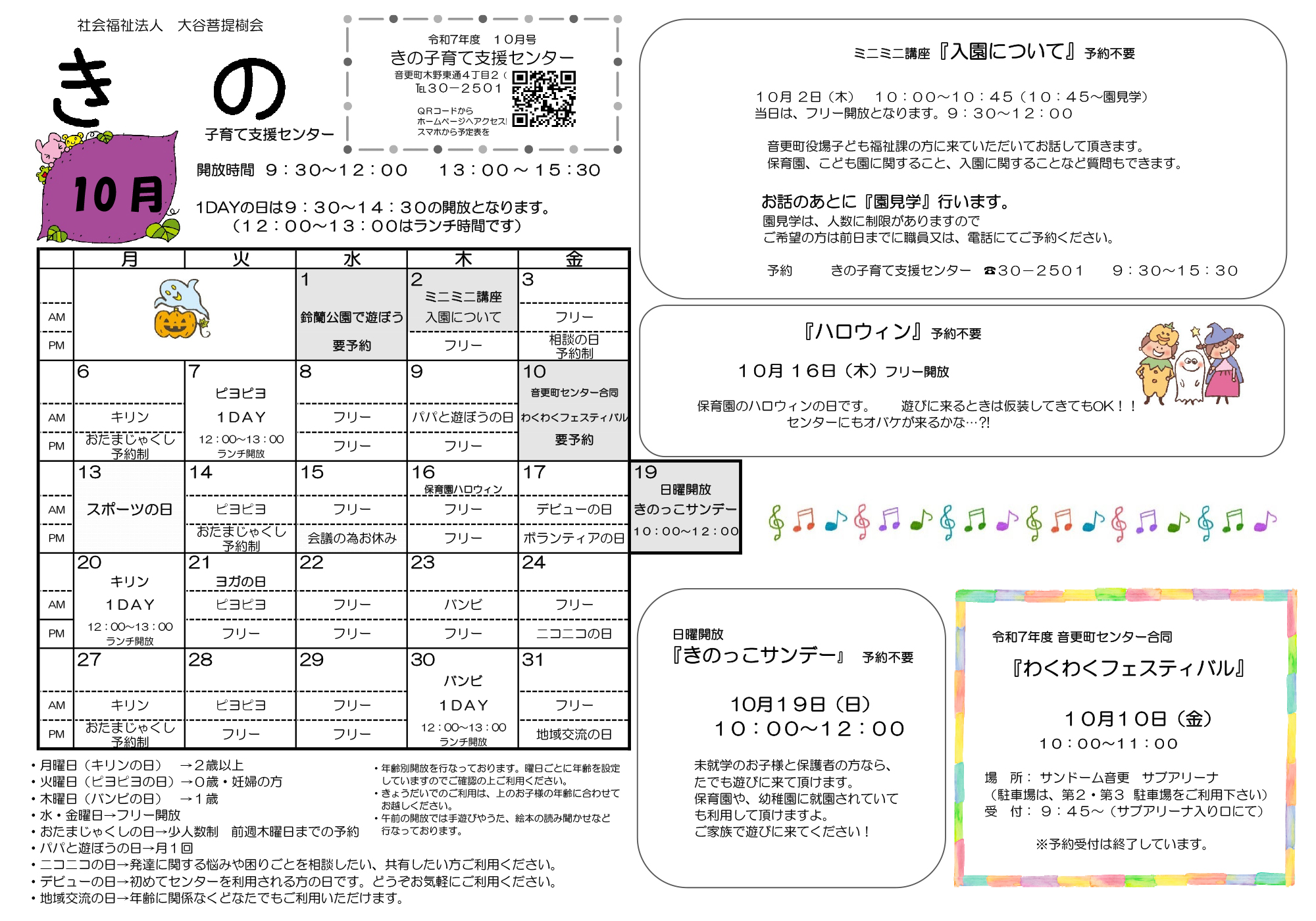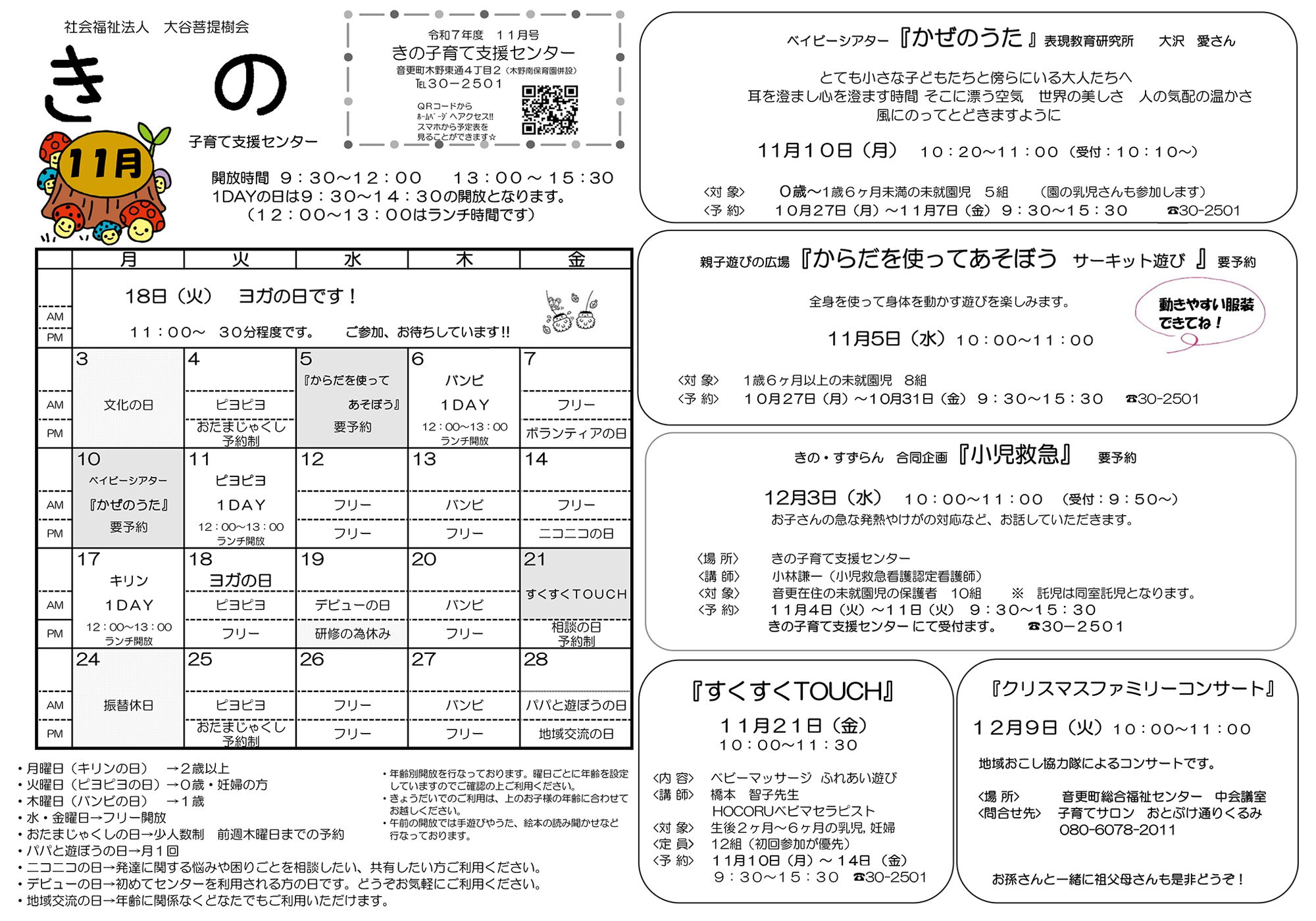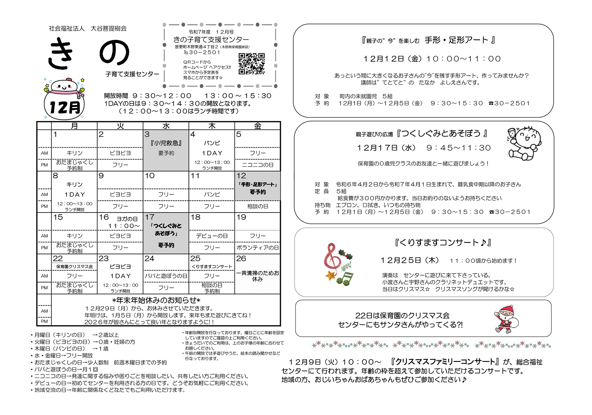 その他、子育て講座や合同事業などもあります。詳しくは、予定表をご覧ください
