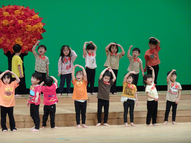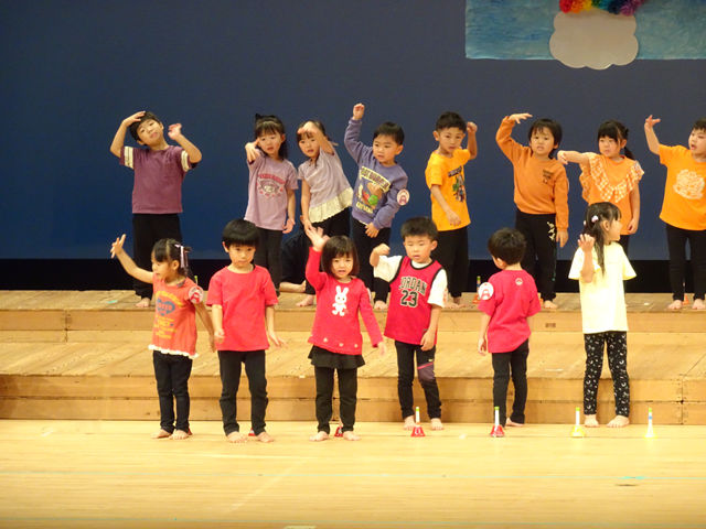 鈴蘭保育園の子ども達は発表会本番を迎えるまでに、お友だちと一緒に歌ったり踊ったり、何かになりきって演じたり、様々な表現する事の楽しさを感じながら過ごしてきました。その様子を見守り励ましてきた先生達から「友だちが一緒だと前に出られました」「はじめは自信が持てず小さな声だったのに、大きな声が出る様になってきました」「揃わなかった掛け声がぴったり合ってきた!」と子ども達の成長している様子があちらこちらから聞こえてきました。