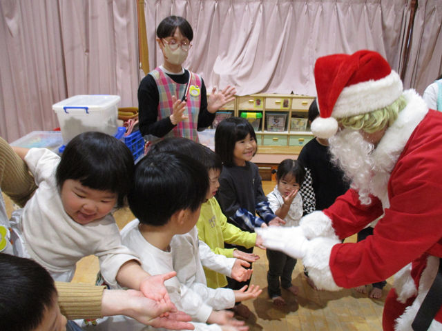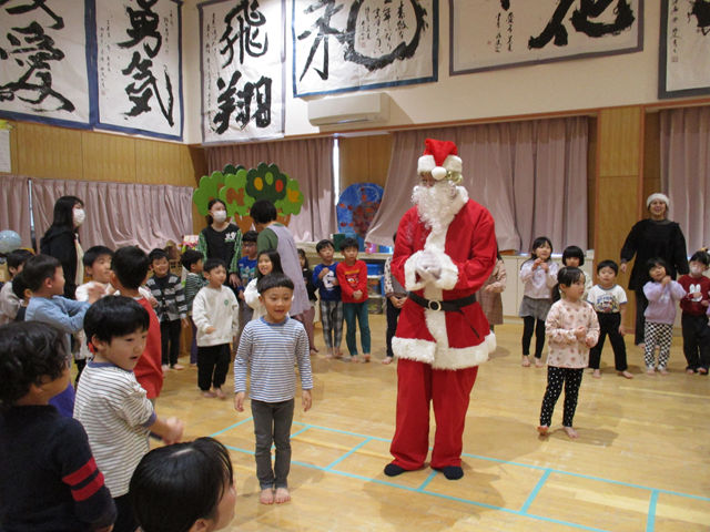 12月に入り鈴蘭保育園のお遊戯場にもXmasツリーが飾られ、子ども達は「うちもツリーだしたよ」「サンタさんにおねがいしたんだ」とおしゃべりしたり、どこからか鈴の音が聞こえてきて大はしゃぎしたり、サンタさんにお手紙を書き、園内に置かれたポストにお手紙を投函したりしながら過ごしていましたよ。そんな日々を過ごす中、ウキウキした気持ちがどんどん大きくなっていった子ども達です。