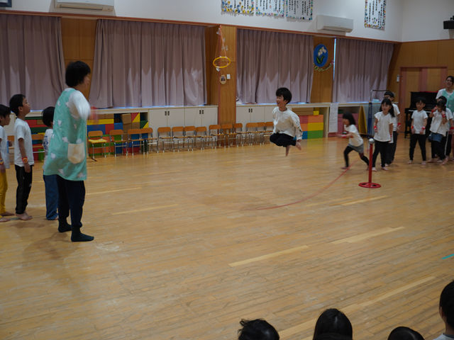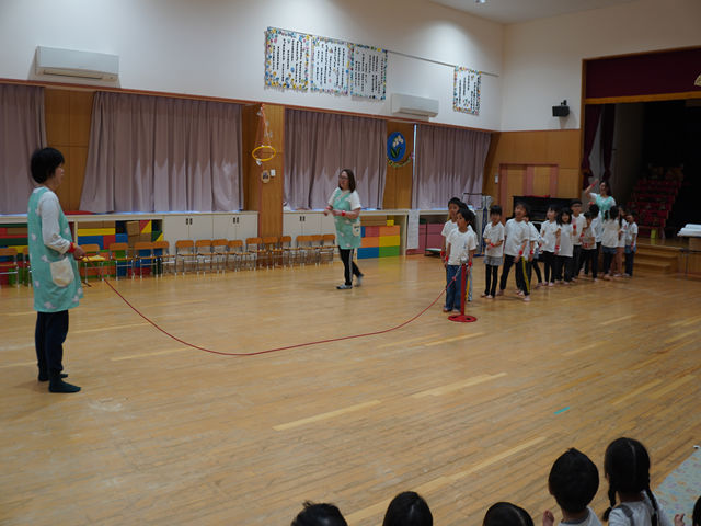 始めは 大縄跳び 全員で 連続跳びです