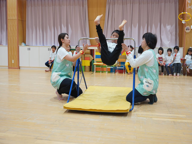 今年も、ひまわり組の子ども達をおくりだす季節になりました。0歳児から入園したお子さんは6年間も!それぞれの子ども達が鈴蘭保育園で思い出を作ってきました。たくさんの経験を重ね、ちょっぴり緊張しながらも、自信をもって自分の得意なことを発表する姿を在園児の子ども達に見せてくれました。「かっこいい」「すごい!」「ひまわり組になったら、跳び箱跳びたい」と応援の声も上がり、憧れの気持ちがまた大きくなっていったようです。在園児からは、「ひまわりぐみさん、いままでいっぱいあそんでくれて、ありがとう、べんきょうがんばってね」とお祝いの言葉を贈りました。